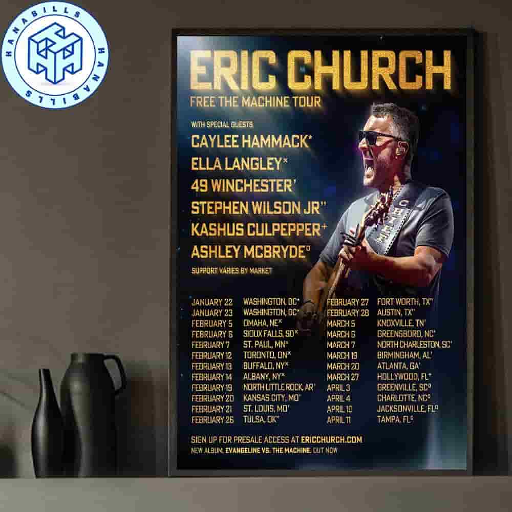 Eric Church Milwaukee Free The Machine Tour 2026 Dates List Home Decor Poster Canvas โ Hanabills Canvas Posters: Turn Every Wall into Art